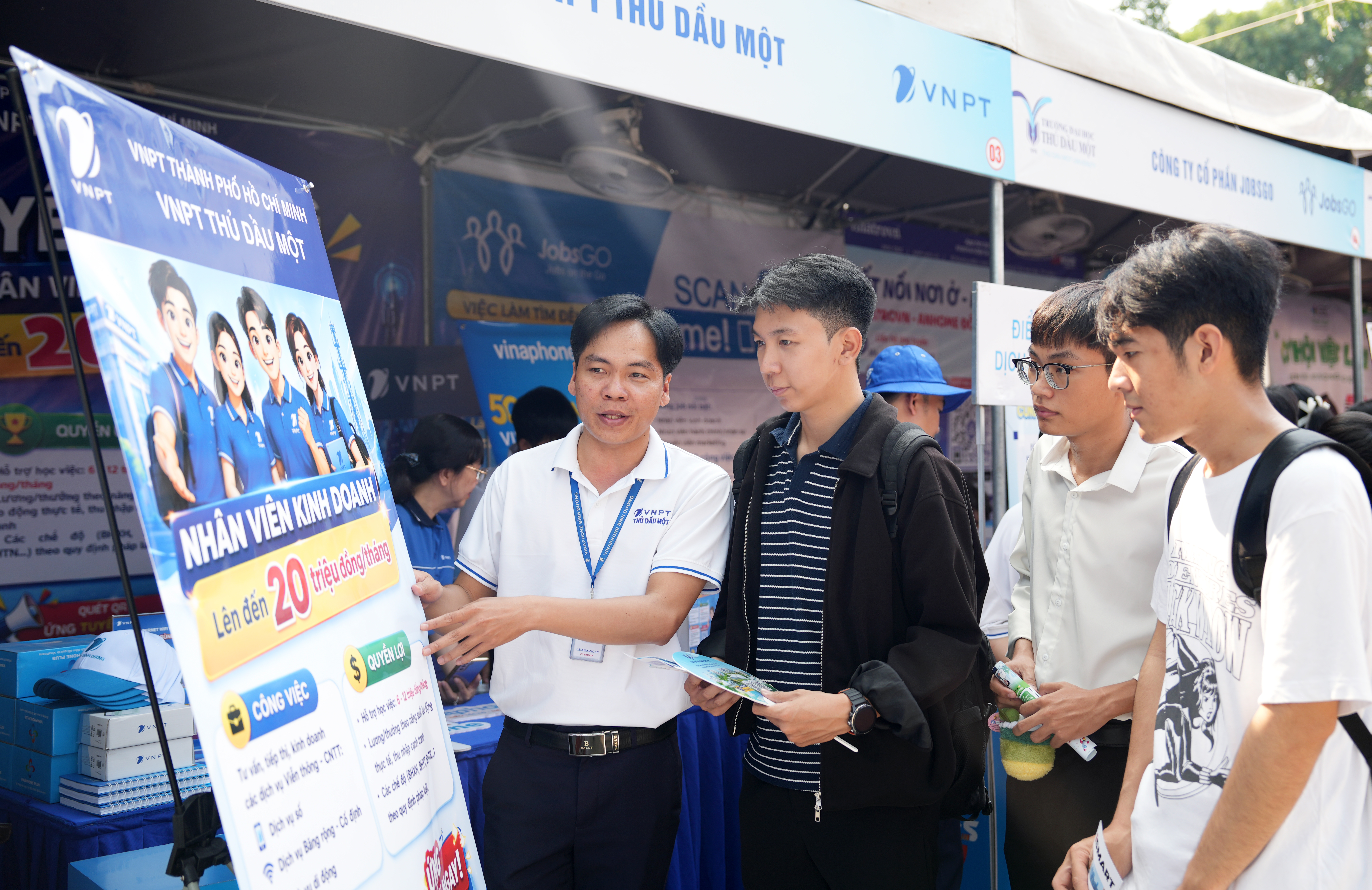 Đội ngũ tư vấn của Trường Đại học Thủ Dầu Một hỗ trợ sinh viên tiếp cận thông tin tuyển dụng và định hướng nghề nghiệp