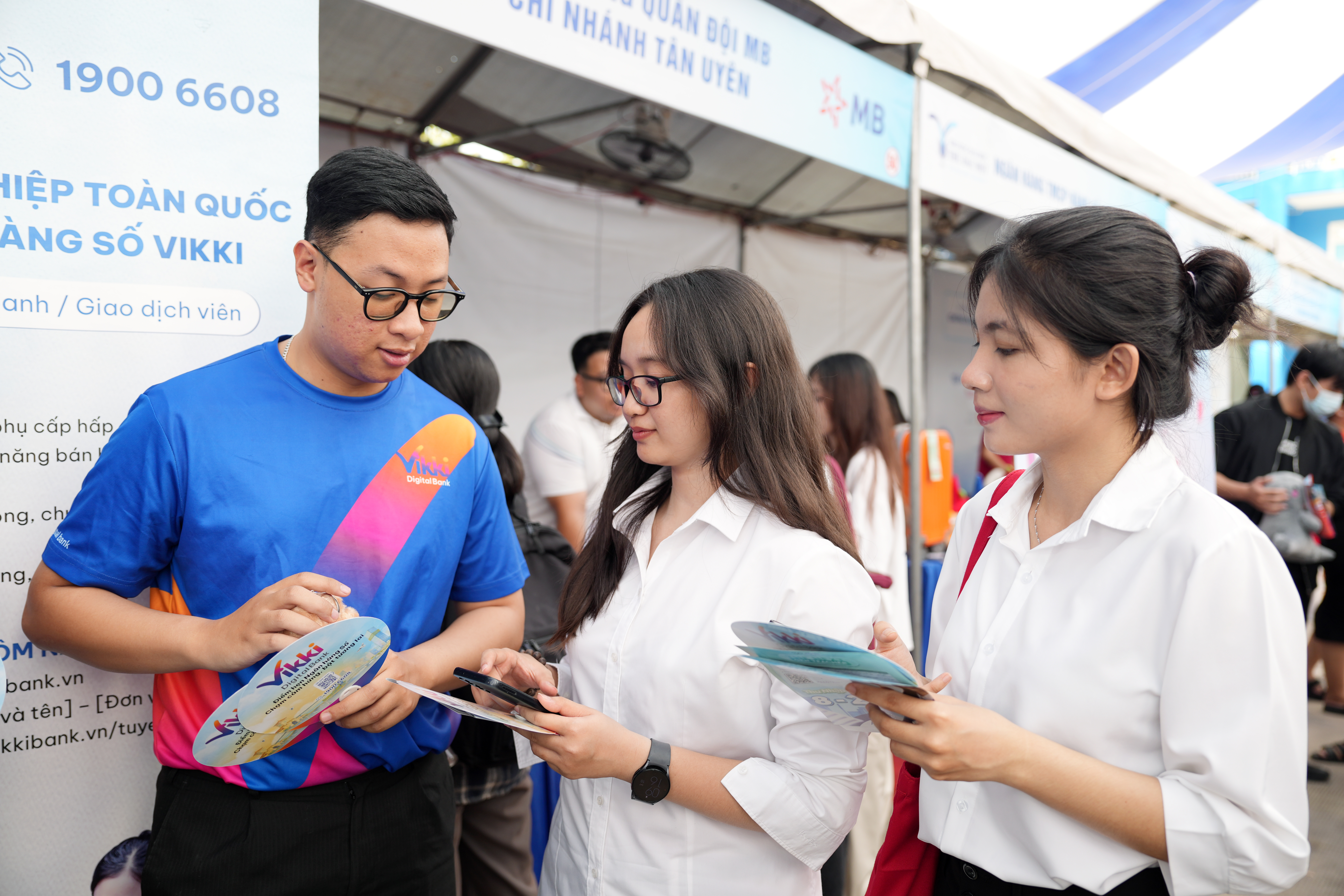 Ngày hội thu hút hơn 4.000 sinh viên và người lao động tham gia, tạo nên bầu không khí trao đổi liên tục tại các khu vực gian hàng. Sinh viên chủ động tiếp cận thông tin tuyển dụng, tìm hiểu yêu cầu công việc, quan sát quy trình tuyển chọn và trực tiếp trao đổi với đại diện doanh nghiệp. Nhiều đơn vị triển khai phỏng vấn nhanh, tiếp nhận hồ sơ và phản hồi trực tiếp, giúp người học hình dung rõ hơn cách thức tuyển dụng thực tế thay vì chỉ tiếp cận qua các kênh trực tuyến.