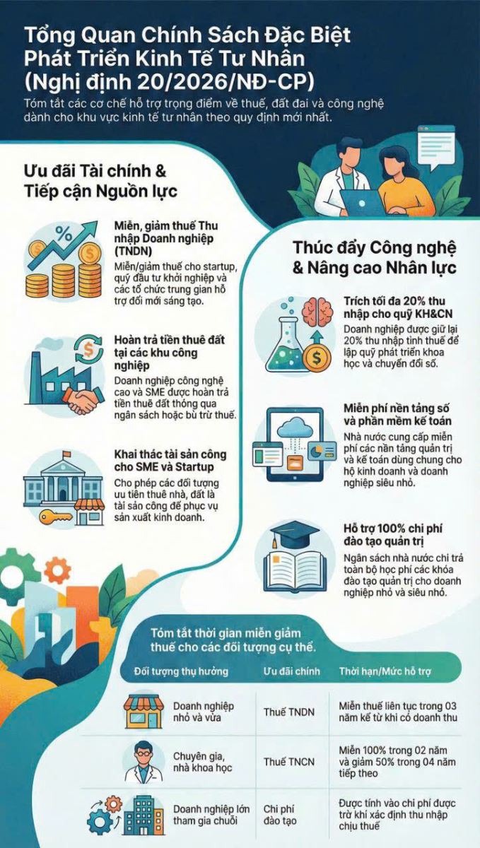 Infographic: Tổng quan chính sách đặc biệt phát triển kinh tế tư nhân (Nghị định 20/2026/NĐ-CP)