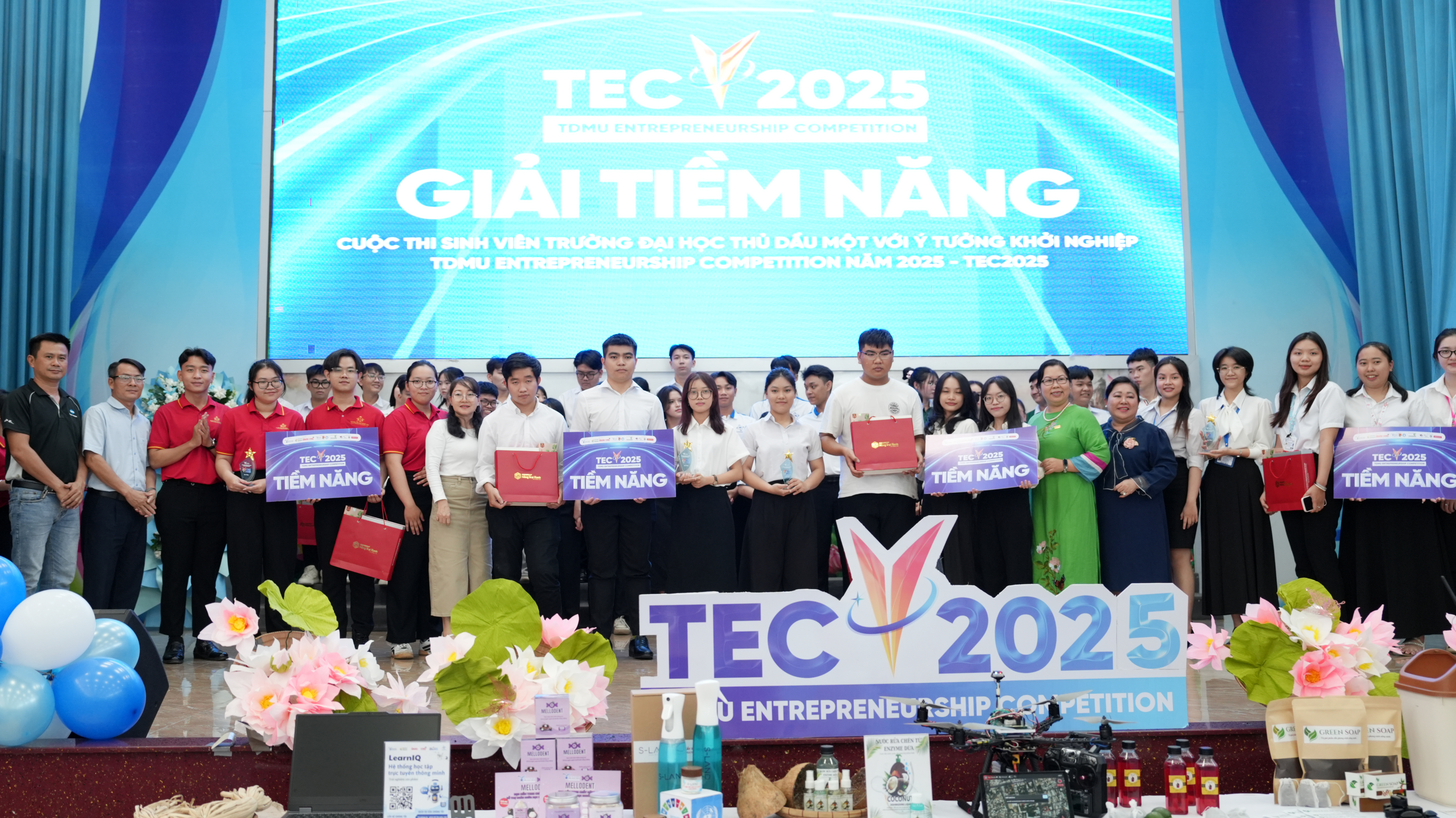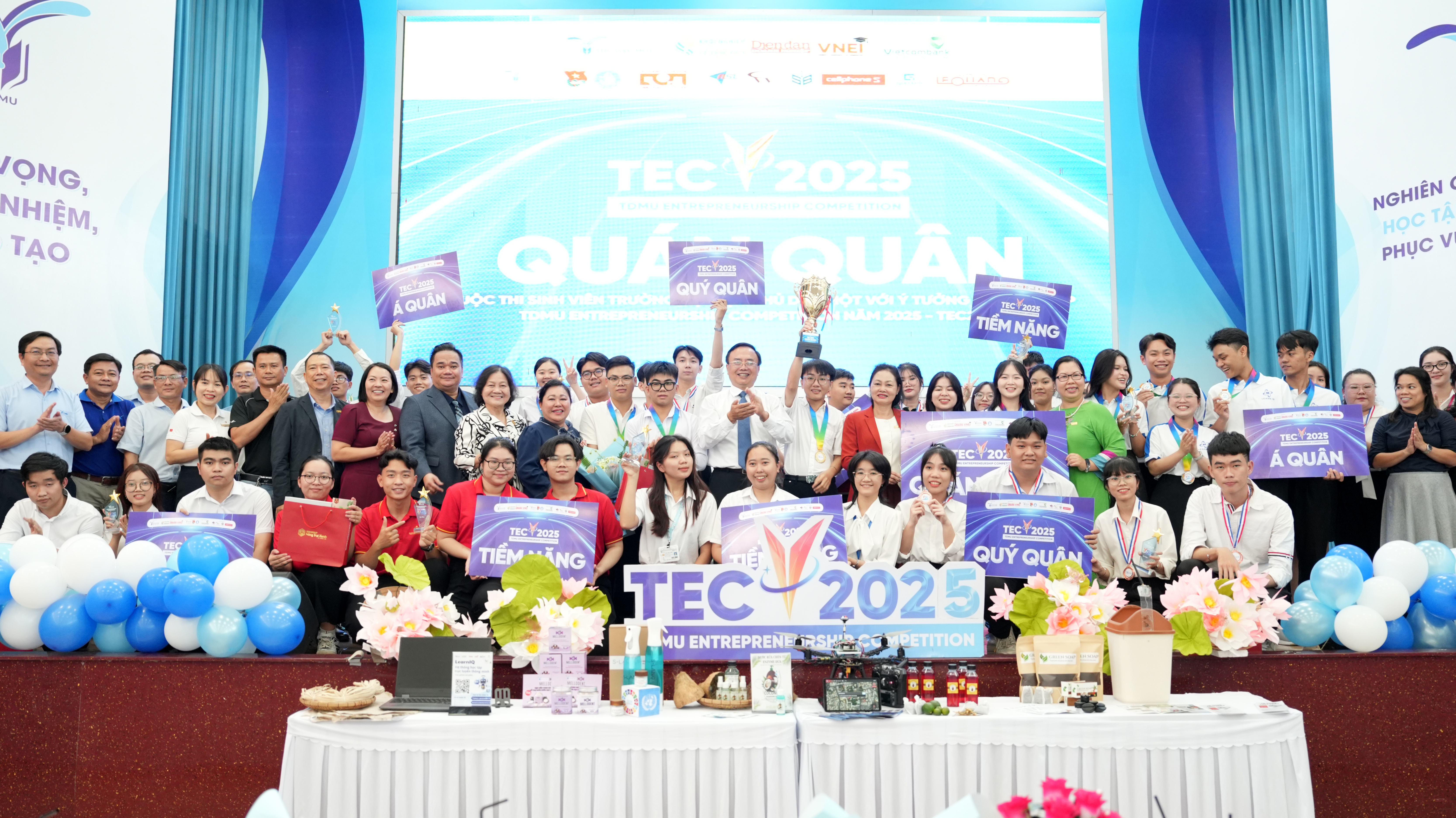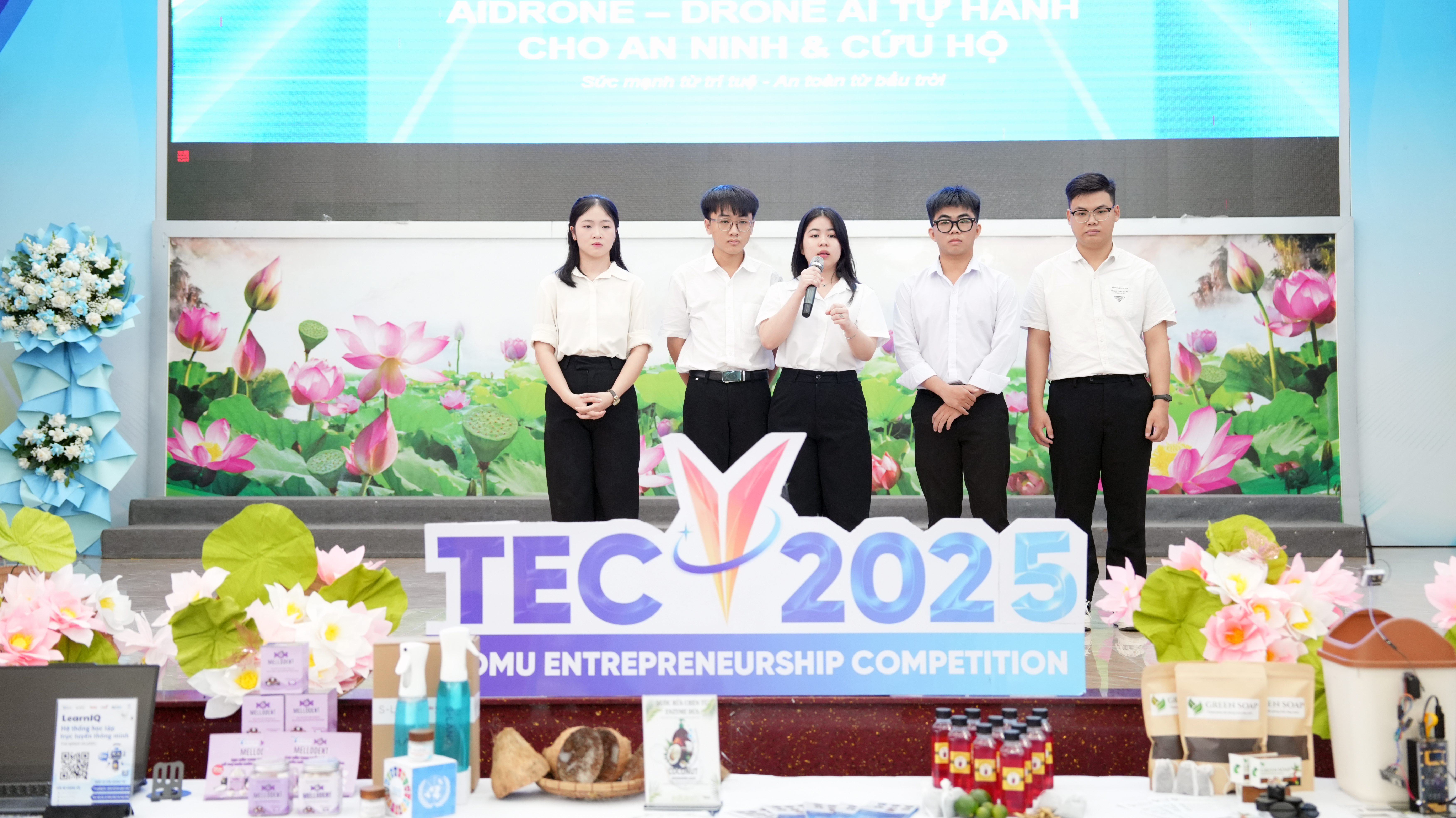 Tận dụng khả năng tích hợp AI và công nghệ điều khiển tự hành, dự án “AIDrone: Drone AI tự hành cho An ninh & Cứu hộ” mở ra hướng tiếp cận mới trong hỗ trợ an ninh, giám sát và ứng cứu khẩn cấp. Với tính ứng dụng cao và giải pháp kỹ thuật thuyết phục, nhóm sinh viên Lê Nguyễn Bảo Trân, Võ Gia Huy, Trần Bùi Quang Huy, Nguyễn Thị Trúc Phương và Phạm Văn Tùng đã xuất sắc chinh phục Ban giám khảo, trở thành Quán quân cuộc thi TEC năm 2025. Giải Á quân được trao hai dự án, gồm: Dự án "LearnIQ Hệ thống học tập trực tuyến thông minh"; Dự án "Hệ thống thông báo và điều phối xe rác thông minh". Giải Quý quân được trao cho các dự án, gồm: Sản phẩm giấy từ nguyên liệu cây lục bình; Kẹo mềm tinh chất măng cụt Mellodent; Green Soap Bã cà phê - từ phế phẩm đến phong cách sống xanh. BTC cũng đã trao 04 giải Tiềm năng cho dự án tham gia cuộc thi.