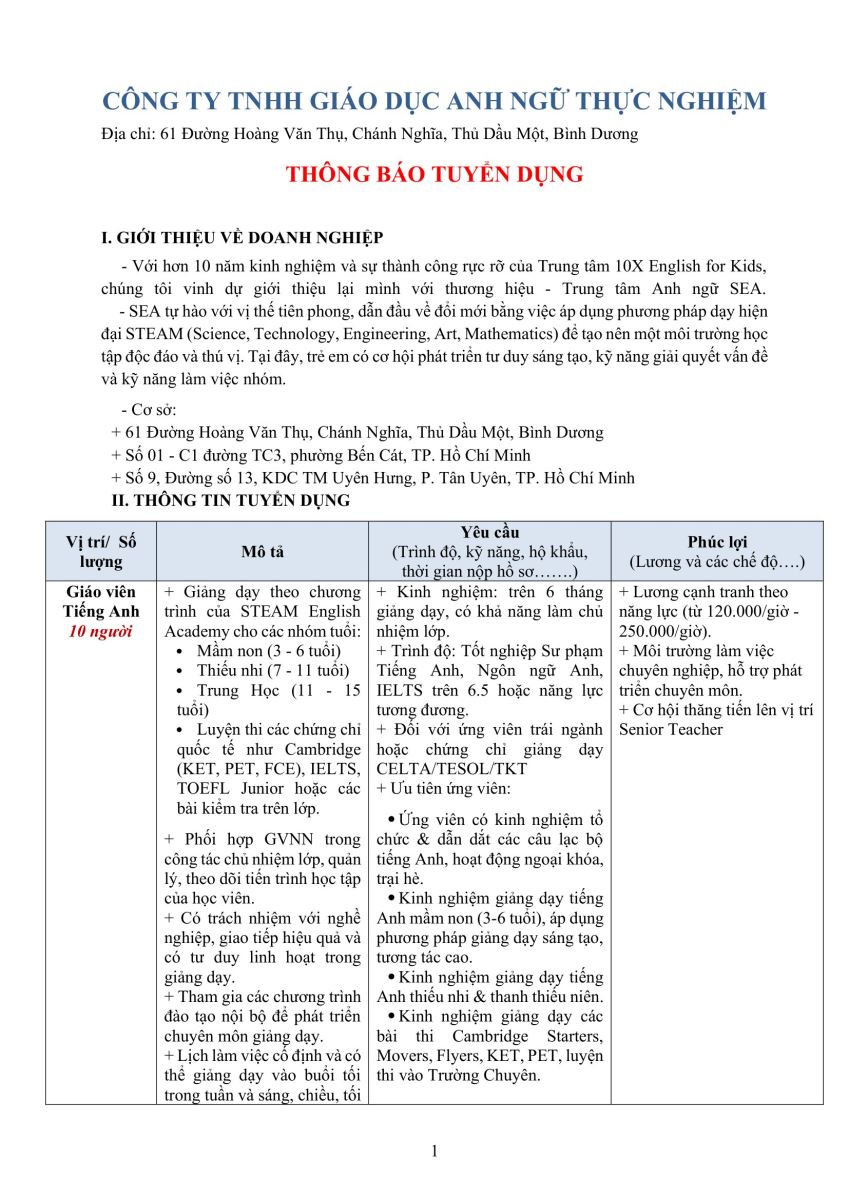 Công ty TNHH Giáo dục Anh ngữ thực nghiệm |