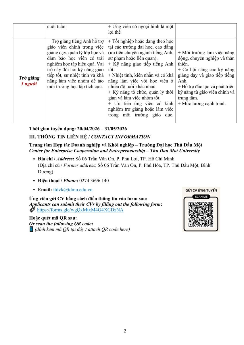 Giáo viên và Trợ giảng tiếng Anh