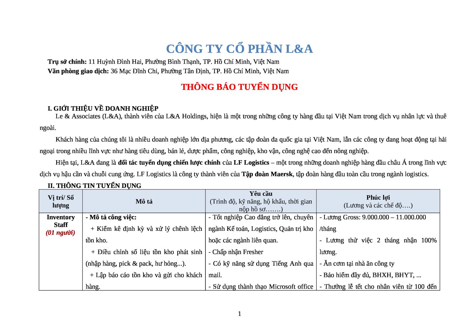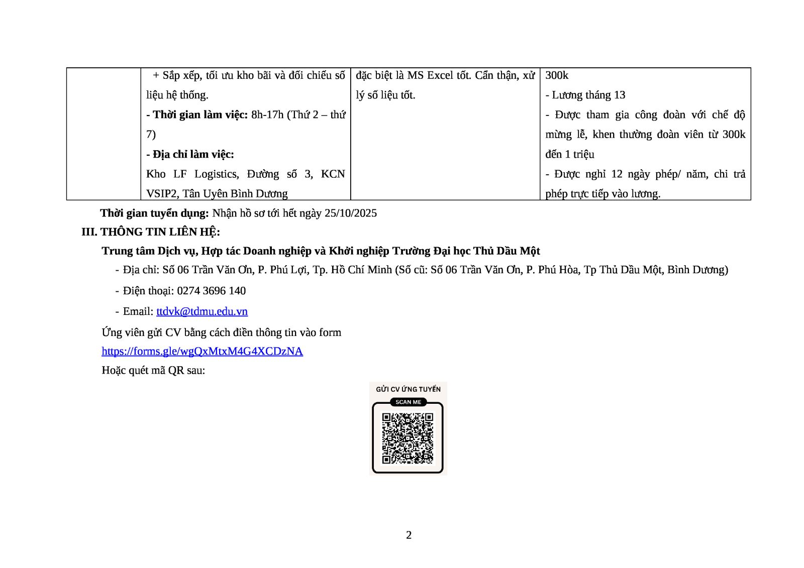 Vị trí tuyển dụng | Khu vực | Mức lương | Hạn nộp HS |