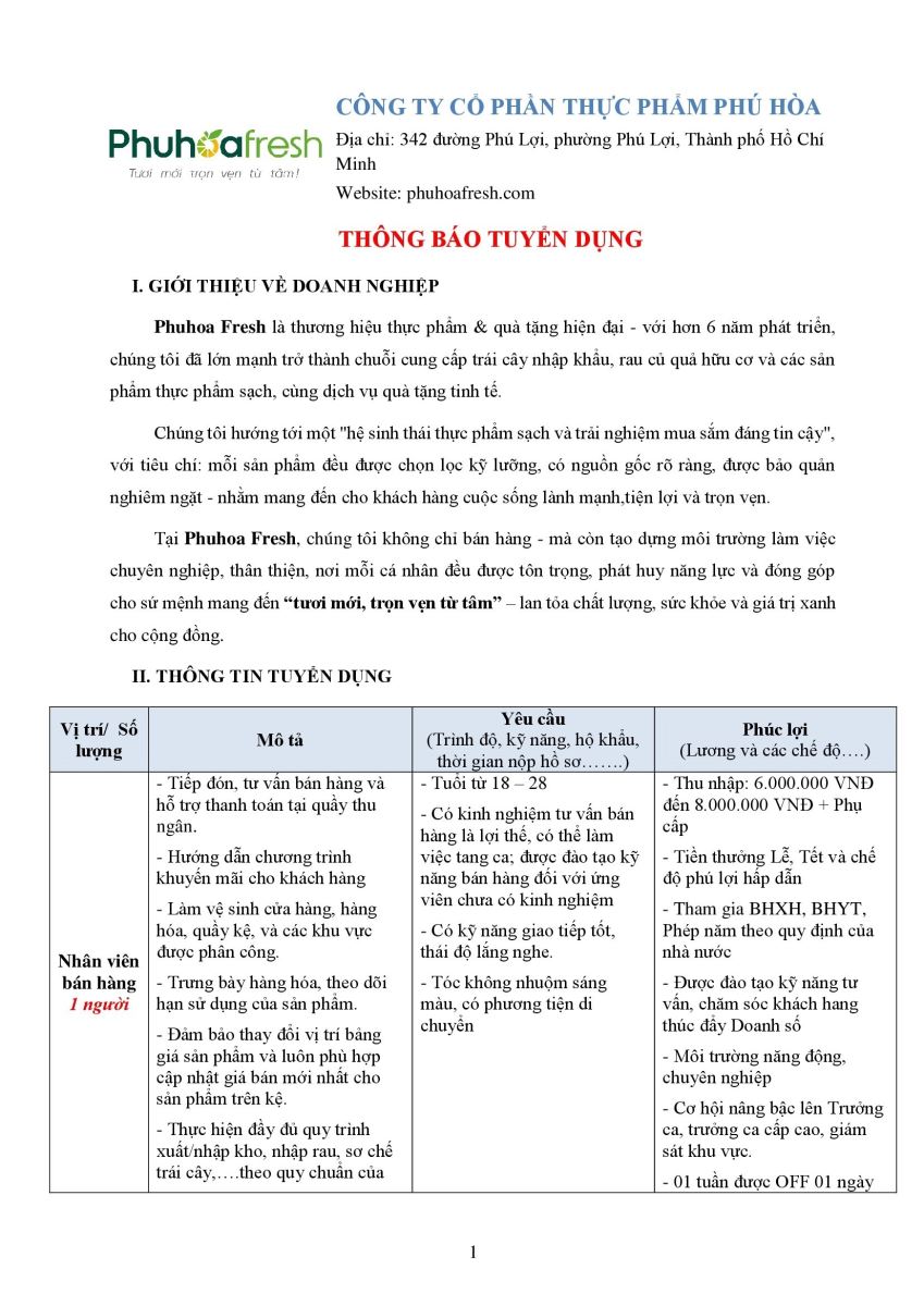 CÔNG TY CỔ PHẦN THỰC PHẨM PHÚ HÒA |
