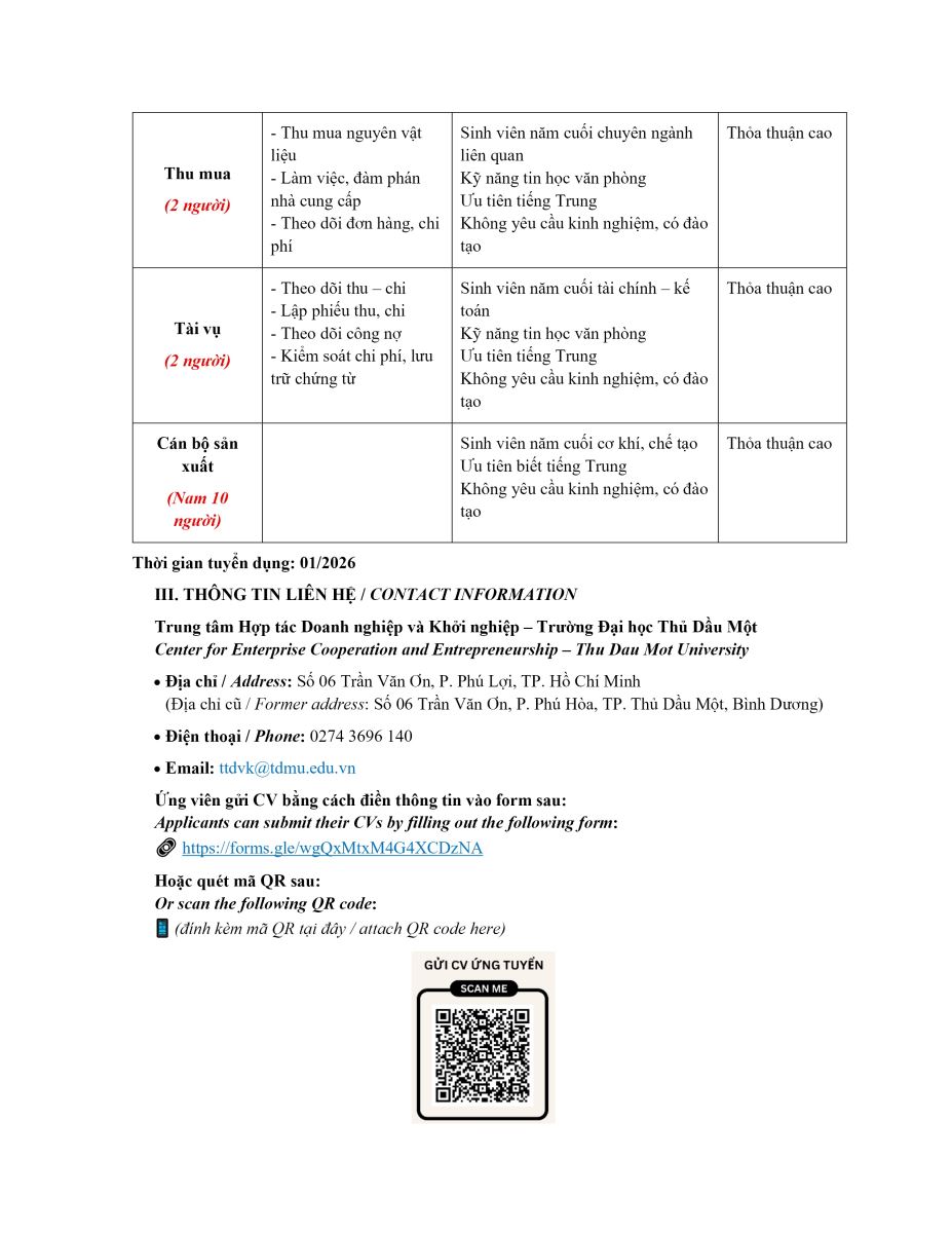 Nhân viên thu mua - Kỹ thuật viên - Nhân sự - Nhân viên kho..v.v