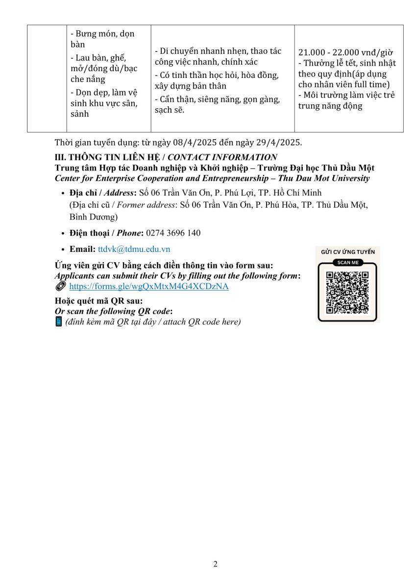 | Vị trí tuyển dụng | Khu vực | Mức lương | Hạn nộp HS |